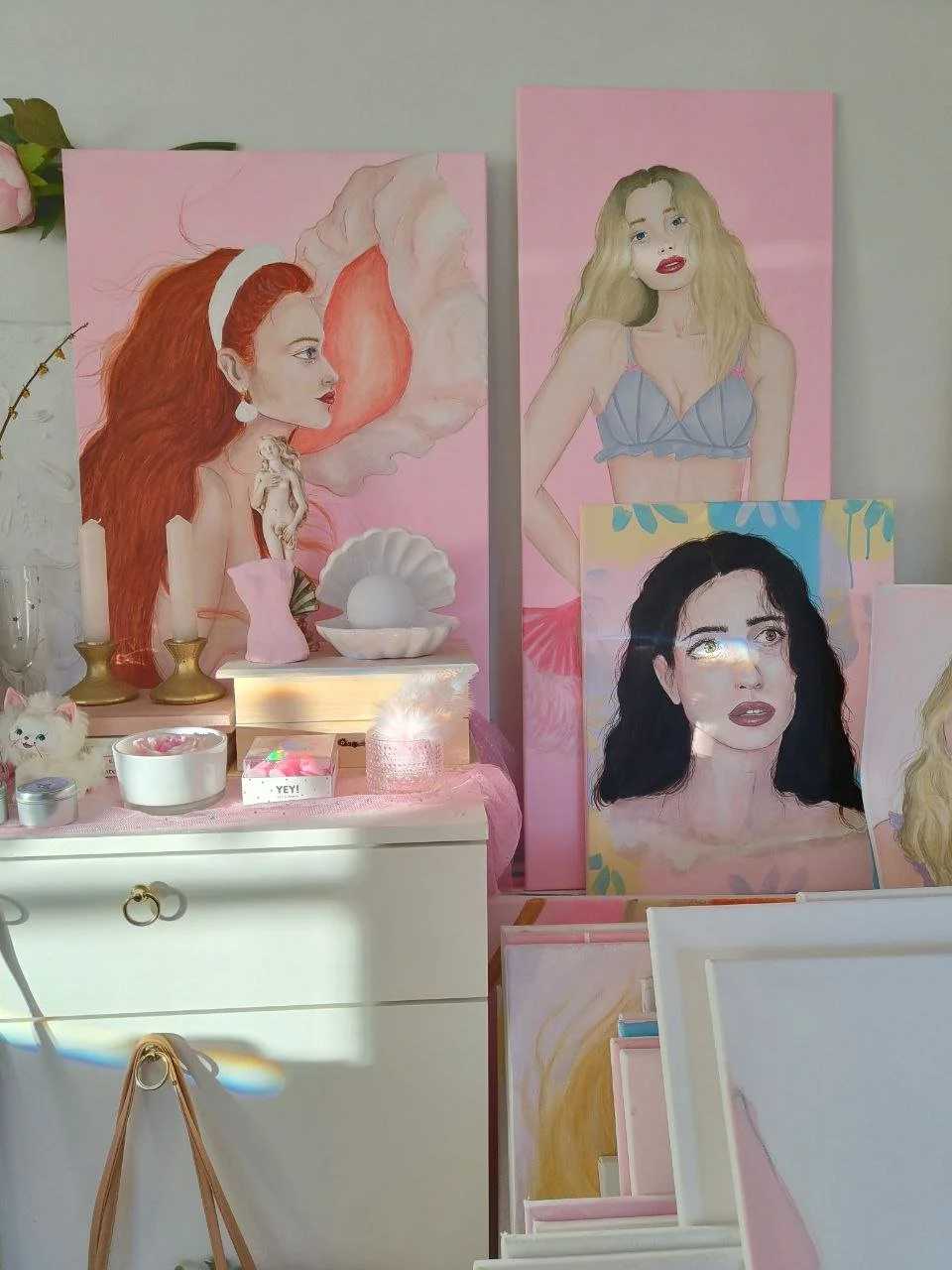 The main themes in my art are usually girlhood and womanhood. I paint both women and young girls. I often use my own childhood photos as a reference, when painting children.